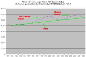 In this next chart, I combined data from the Bureau of Economic Analysis and the Census Bureau to show real GDP per capita growth in 2009 dollars.
