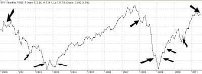 I have highlighted the booms of the past decades on this Federal Reserve chart. The decline from this last boom is dramatic. Why? Any student of the stock market will recognize a familiar reversal pattern in the chart above – the Head and Shoulders. The peak of 1990 is the left shoulder, the tech peak of 2000 is the head and the housing peak of 2007 forms the right shoulder. While there is not a consistent “neckline” component to this graph, that is probably due more to tax cut and housing legislation passed in 2003, which prevented a further decline in the ratio. What does the head and shoulders pattern signify? A painful return to normal or “reversion to the mean.” In order to get to the average, there is a period when we have to go below the average. That’s the painful part.