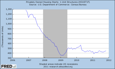 Residential housing starts still suck. The market for multi-unit housing has been strong because so many people can not afford or qualify to buy a home despite the fact that there are hundreds of thousands of vacant homes littering the country.