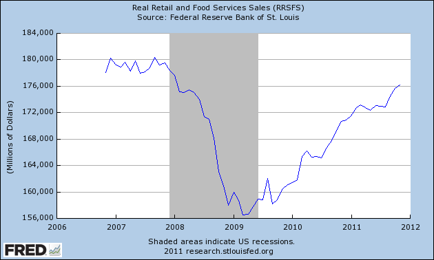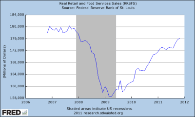 The U.S. consumer is still not back. Below is a graph of real retail sales.