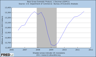 But the most telling chart of all is the end of the recession! After 4 painful years, Real (or inflation adjusted) GDP has finally reached and surpassed the level it was in 2007, before the recession. The official end of the recession was – cue the laugh track – in July 2009.