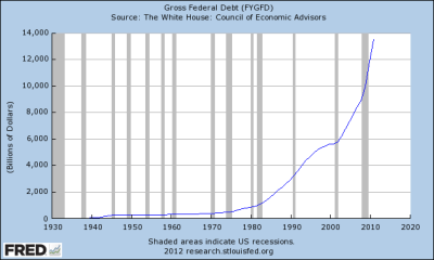 There are several “factoids” running around the internet that Obama has run up more debt than all past presidents combined. According to the Treasury Dept that claim is not true but the run up in debt has been outstanding since Obama took office in January 2009. When Bush left office, the total debt was 10 trillion. It was 15.5 trillion at the end of February 2012.