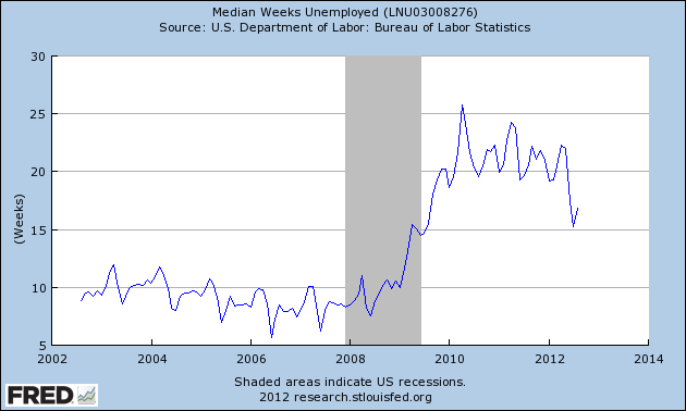 The unemployment rate for those aged 20 – 24 years has been steadily declining since late 2010 but has ticked up in the past few months.