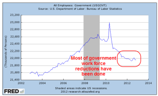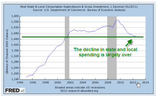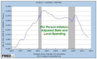 For the past several years, Republicans both in Congress and at the state level have targeted the growth in state and local spending. This campaign of austerity, as Democrats call it, or fiscal common sense, as some Republicans call it, has won Republicans the governerships of thirty states. Most of that spending growth has been curbed.