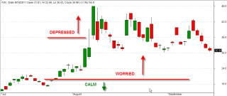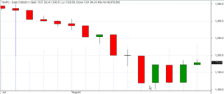 The volatility index, or VIX, measures the relative uncertainty of the broader market using a formula that analyzes the bid -ask spreads of option contracts, which are promises to buy or sell stocks in the future. When the markets are fairly calm, the VIX index is under 18 – 20. As markets melted down in October 2008, the VIX rose to 80. So, 16 is pretty good; 80 is real bad. In the last week of July 2011, this index jumped 20%, then skyrocketed to 48 in the first week of August.