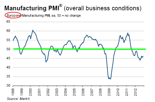 The manufacturing PMI for the Eurozone also increased but remains at recession levels. The lackluster demand in Europe will crimp growth in the U.S.