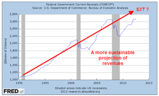 When we run a projection of revenues using more sustainable averages based on longer term trends, we come up with an optimized $3 trillion in revenues for the current year, still leaving us $600 billion short of current spending.