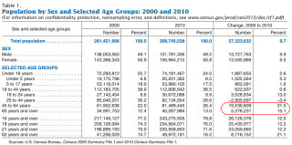 Demographic changes, combined with persistent job weakness among younger workers, is silently eroding the foundations of the Social Security system. The older half of the population, particularly the Woodstock generation, are growing faster than the younger population, as this table from the Census Bureau shows.