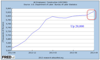 After six months of little growth, employment in construction rose by 20,000 this past month.