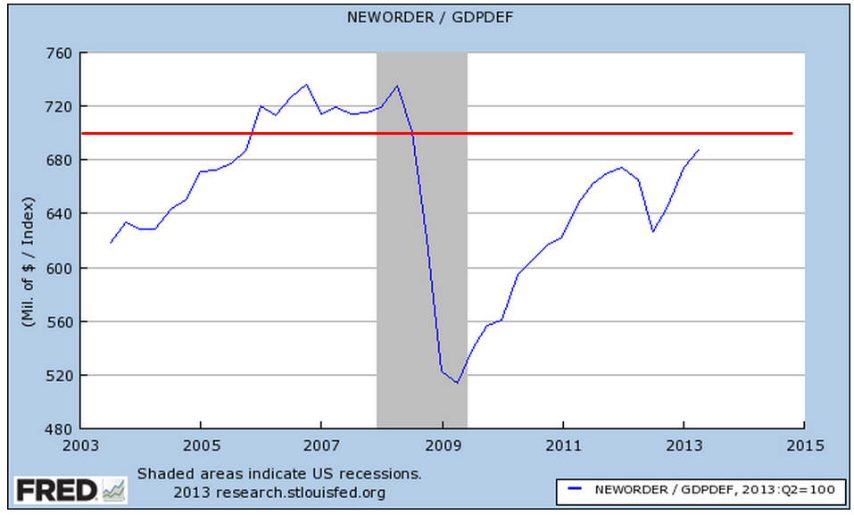 When adjusted for inflation, the level of new orders is still below the levels of mid-2008.