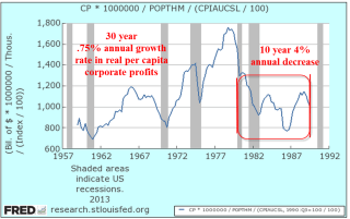 Now, let’s crank up the wayback machine. It’s November 1973. Despite the signing of the Paris Peace accord and an act of Congress to end the Vietnam war, thousands of young American men are still dying in Vietnam. The Watergate hearings continue to reveal evidence that President Nixon was involved in the break in of the Democratic National Committee and the subsequent attempts to cover it up. Rip Van Winkle is disgusted. “This country is going to the dogs,” he mutters to himself. He lies down to take a nap in an alleyway of the theater district of New York City. The SP500 index is just below 100. Well, Rip doesn’t wake up for 20 years. In November 1993, he wakes up, walks out on Broadway and grabs a paper out of nearby newspaper machine. The SP500 index is 462. Rip doesn’t have a calculator but can see that the index has doubled a bit more than twice in that time. Using the rule of 72 (look it up), Rip estimates that the stock market has grown about 8% per year. Which is just about normal. But normal is what Rip left behind in 1973. “Normal” is SNAFU. So he goes back into the alleyway and goes back to sleep for another twenty years, waking up just this past month. He walks out on Broadway and reads that the index has passed 1800. “Harumph” Rip snorts. That’s two doublings in twenty years, a growth rate of a little over 7%. Rip reasons that eventually he’ll wake up, the country will have mended its ways and Rip will notice a growth rate of 9 – 10% in the market index. He goes back to sleep.