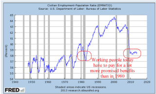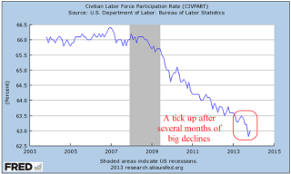 The percentage of the labor force that is working edged up after severe declines this year but the trend is down, down and more down.