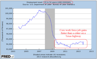 There are still some persistent trends of slow growth. Job gains in the core work force aged 25 -54 are practically non-existent.