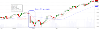And now, let’s hop in the wayback machine – well, a little ways back. Shocks happen. During periods when the market is relatively well behaved as it has been this year, investors get lulled into a sense of well being. From July 2006 through February 2007, the stock market rose 20%. Steadily and surely it climbed. Housing prices had already reached a peak and the growth of corporate profits was slowing. Some market watchers cautioned that fundamentals did not support market valuations. At the end of February 2007, the Chinese government announced steps to curb excessive speculation in the Shanghai stock market (CNN article). The stocks of Chinese companies tumbled almost 10%, sending shocks through markets around the world. The U.S. stock market dropped more than 5% in a week.