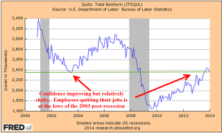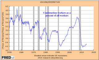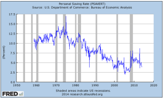 The stock market trades on profit growth. Standard and Poors reports that 4th quarter earnings for the companies in the SP500 rose 9.8%, accelerating from the 6.0% growth in the 3rd quarter of 2013. A moderately improving economy and only modest growth in investment has helped boost profits. Profits are expected to rise 11% in the second half of 2014.