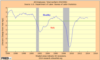 While this may have been a contributing factor to the decline, it would be a mistake to give it too much weight. The growth in personal income has been relatively weak and it shows in the consumer spending index released this week. The .1% year over year increase – essentially zero – indicates consumer demand that is too weak to put any upward pressure on prices. Sensing this, businesses are less likely to invest in growth. Less investment growth means that employment gains will be modest, which further reinforces modest economic growth.