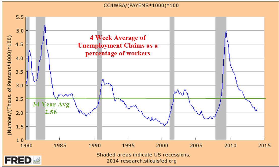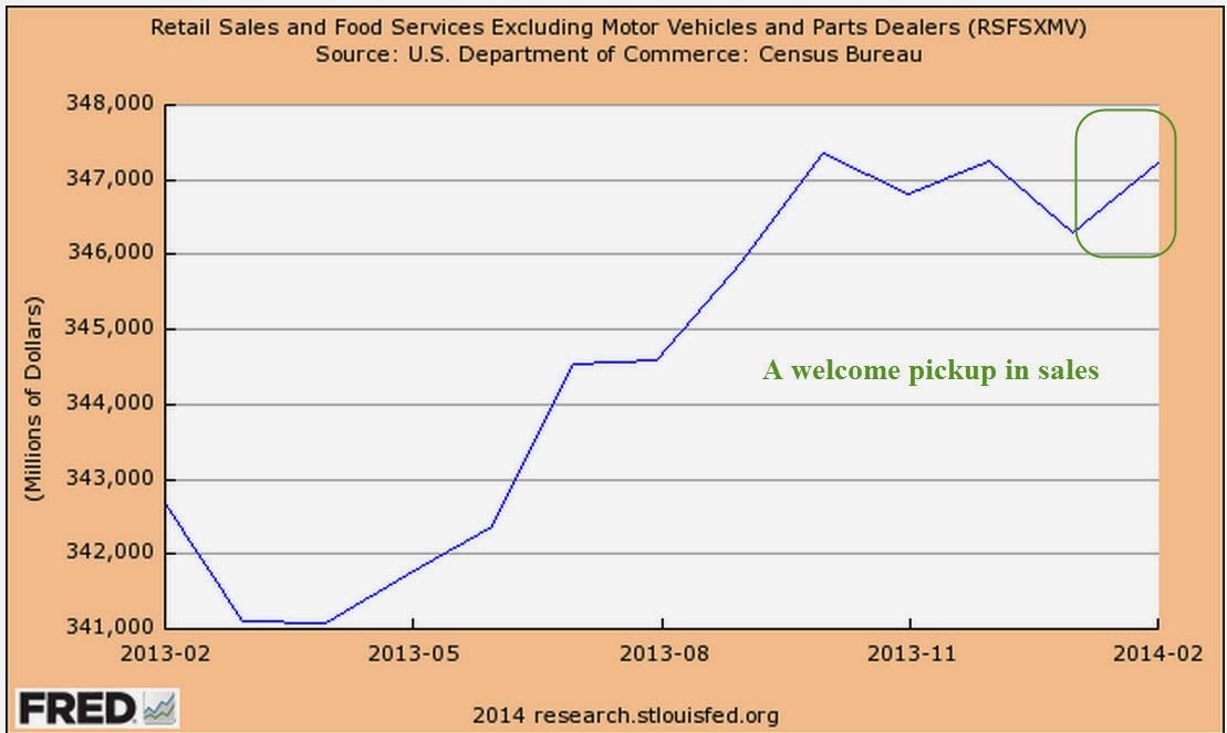 The stock market trades on profit growth. Standard and Poors reports that 4th quarter earnings for the companies in the SP500 rose 9.8%, accelerating from the 6.0% growth in the 3rd quarter of 2013. A moderately improving economy and only modest growth in investment has helped boost profits. Profits are expected to rise 11% in the second half of 2014.