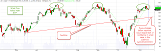 If the index continued to break down below the neckline, George expected further weakness, perhaps another 10% drop as investors lost confidence in small cap stocks. Falling oil prices and low gas prices helped small caps but the strong dollar and continued weakness in the European countries and Japan would curtail export growth.