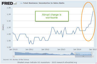 The inventory to sales ratio has climbed abruptly in the last half of the year. Businesses make their best guess in anticipating future demand. A capitalist economy is based on the decision making of millions, not a central committee of a few. If inventories continue to mount, we can expect that businesses will adjust to the new environment and rein in production and expansion plans.
