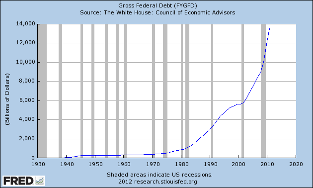 We’re now up to a $700 billion annual deficit based on revenue and spending patterns over the past fifty years. As the total Federal debt grows, so will the interest costs on that debt. Over the past seventy years, interest costs have averaged 1.8% of GDP, almost 30% higher than the 1.4% of the past few years (Table 3.1 OMB 2013 Budget) Ballooning debt levels and rising interest rates could easily add another $100 billion to annual deficits. We’re now up to $800 billion and growing, based on historical averages.