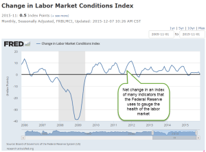 Growth in the core work force is a strong 1.5%, a good sign. These are the workers aged 25-54 who are building families, careers and businesses. The change in the Labor Market Conditions Index (LMCI) turned positive again in October. This is a composite labor index of twenty indicators that the Federal Reserve uses to judge the overall health of the labor market. They have not released November’s LMCI yet. This index showed negative growth for the first part of the year and was the chief reason why the Fed did not raise interest rates earlier this year.