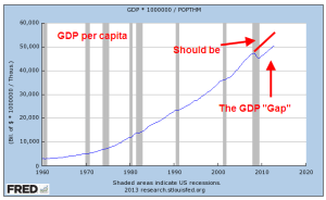 Before I get into a historical perspective on this week’s goings on in Washington, let’s look at a troubling indicator in the latest consumer confidence survey. September’s survey from the Conference Board indicated a high negative gap between consumers’ expectations and their current conditions (Note #1). This gap is measured by subtracting consumer responses about their current conditions from their expectations of the near future. If I am doing well now but worried about my job in the next six months to a year, that loss of confidence in the future will show up as a negative gap between current conditions and expectations in the survey.