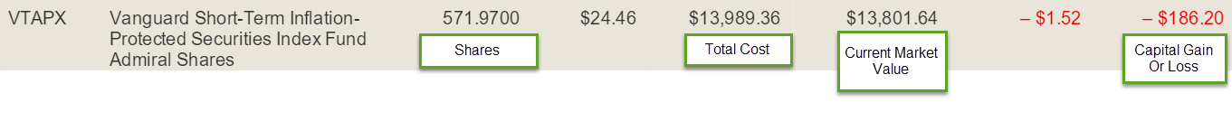 Mutual fund companies typically calculate an investor’s cost basis for their funds. Some investors mistakenly think that cost basis reflects the performance of their investment. It doesn’t. Let’s look at an example of a cost basis entry: