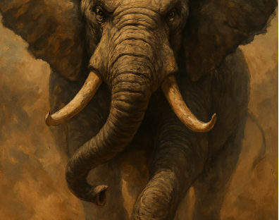 Image by ChatGPT in response to the prompt “draw an image of an angry elephant.”