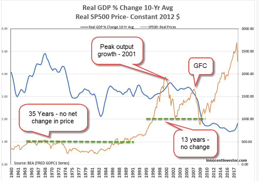 1. Adjusted for inflation by the Federal Reserve’s preferred method, the Personal Consumption Expenditures Price Index (FRED series PCEPI). Prices do not include dividends