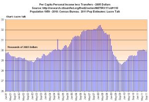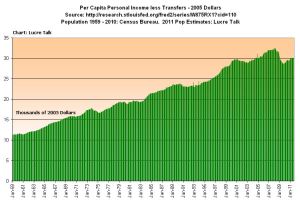Cain nodded. “Sure, that’s what people care about. If there is a bigger population, there will be higher overall growth. You have to divide by the population to get a sense of what people are experiencing in their daily lives.”