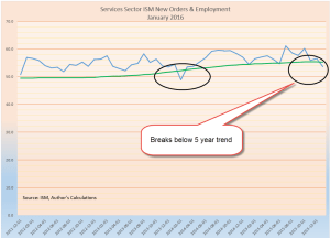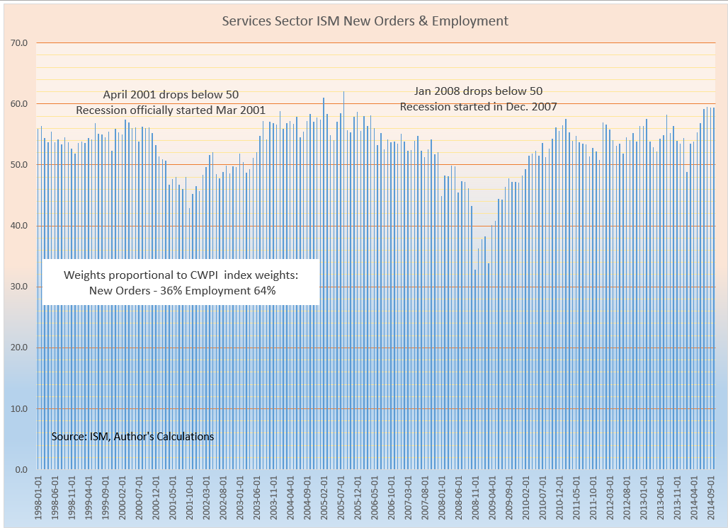 Although manufacturing has been contracting, a report on the rest of the economy was more encouraging, although a bit lackluster (Note #2). Service businesses are continuing to hire but the pace has slowed. New export orders have accelerated but new orders in total slowed significantly from August. Something to like, something not to like.