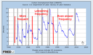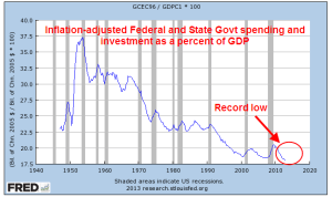 A few months after 9-11, China was admitted to the World Trade Organization, and within a decade became the world’s factory. Investors poured capital into China, taking advantage of low labor rates and a currency whose exchange rate was maintained at a low level by the Chinese central bank. Investors from outside China got more bank for their buck. As investment moved to China, many production facilities in the U.S. shuttered their doors. In the seven-year span between China’s admittance to the WTO and the start of the financial crisis in September 2008, manufacturing employment (see FRED Series MANEMP) fell by a fifth. By January 2010, employment in the manufacturing sector had declined by a third.