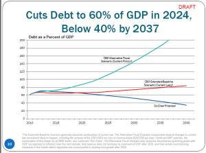 Here is the Congressional Budget Office (CBO) projection of this country’s debt and the effect of the Debt Commission’s proposals on the debt. (Click to enlarge in separate tab)
