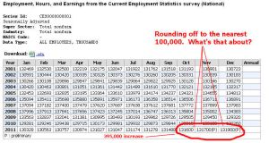 I will not do a complete reference for each series. Here’s the identifiers for each series: Finance Value Added – VAPGDPFI. Employment in finance – USFIRE. Construction employees – USCONS. Retail Value Added – VAPGDPR. Retail Employees – USTRADE. Manufacturing Value Added – VAPGDPMA. Manufacturing Employees – MANEMP. Education, Health Care, Social Services Value Added – VAPGDPHCSA. Employment is a composite of 4 series. Mining Value Added – VAPGDPM. Mining Employment – CES1021000001