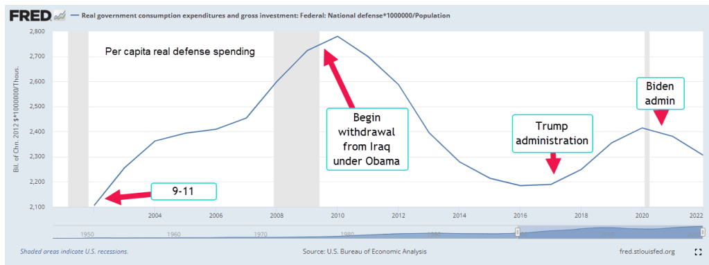 Cain replied, “Whoa, there, pardner. All the entitlement programs that liberals passed have been the main contributor to the debt, if you ask me. We talked about this last week. Medicaid spending is up to a trillion by now. That’s more than 3% of the country’s GDP. In 1990, we spent five times as much on defense as on Medicaid. Now they are almost equal (Source). This country needs to have a conversation about our priorities.”